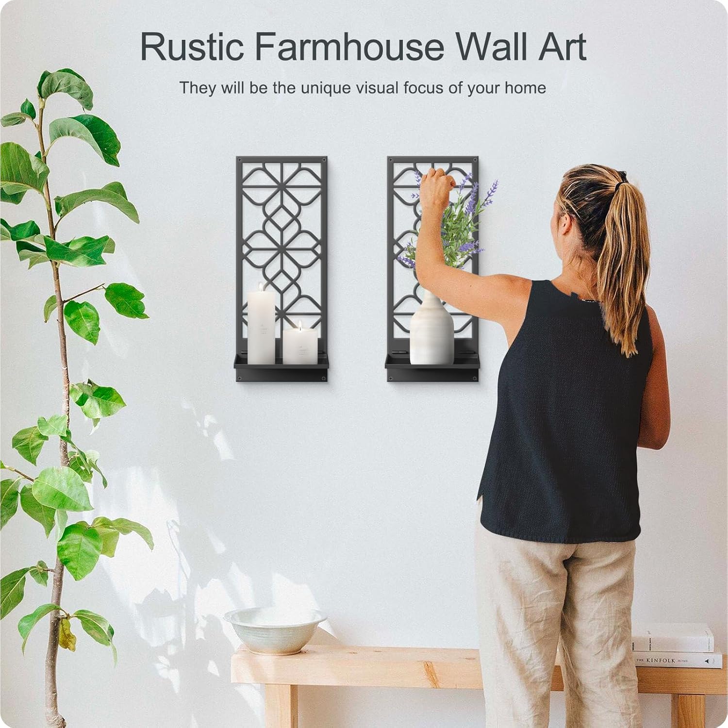 Black Metal Wall Decor, Minimalist Retro Wall Art, Wall Candle Holder, Farmhouse Rustic Bathroom Wall Art, Aesthetics Wall Hanging for Living Room Bedroom Bathroom (2 Pack, 16.5 x 7 in)